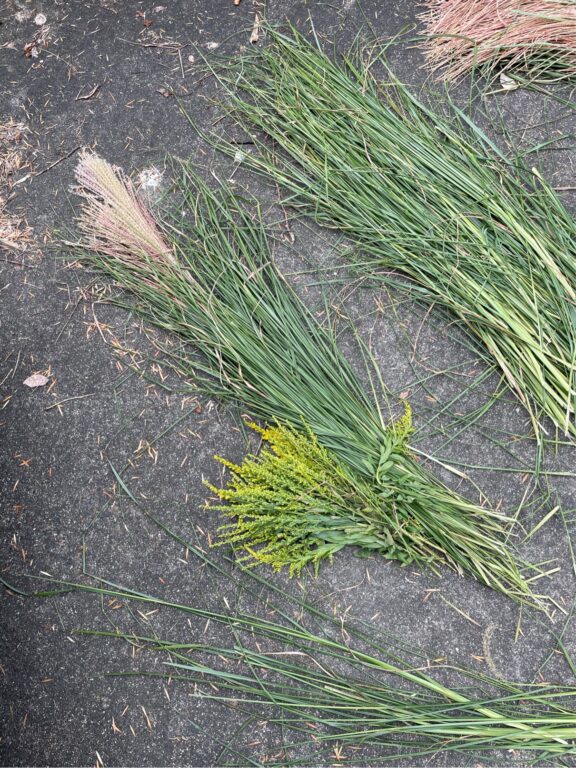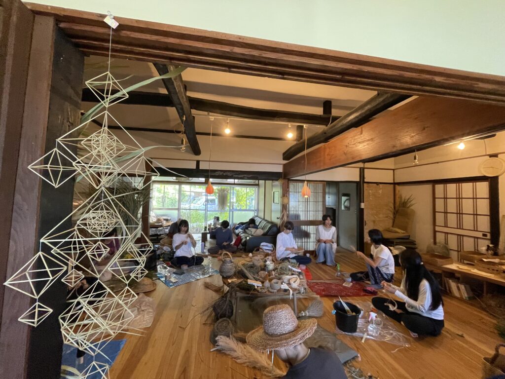今回草編みで使いました、原種のとうもろこし丸ごと一本 や真菰、しなだれすずめがや、力芝などが入った宙茶を飲んでいただき
