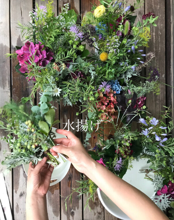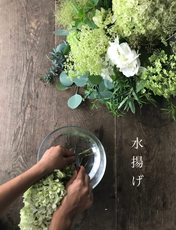 摘んだ後の草花に水をたっぷりと吸わせてあげること(摘んでなくても花屋さんなどで 購入後のものでも◯)